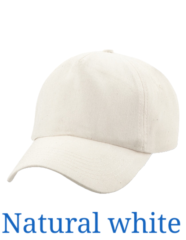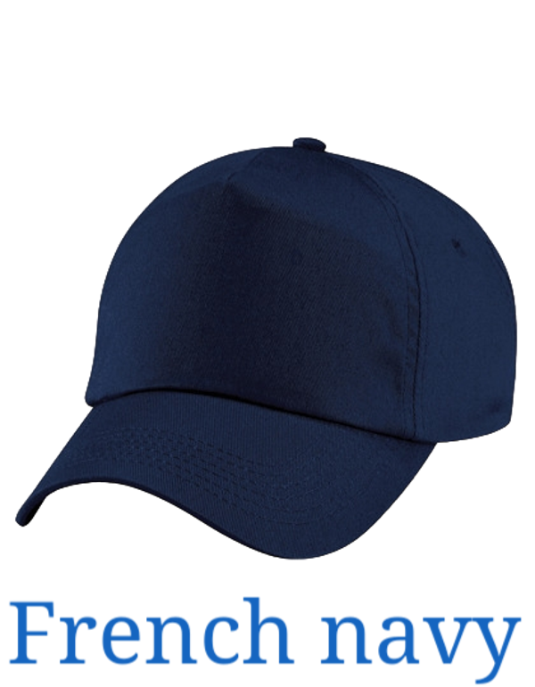 Beechfield 5 panelpet bedrukt met tekst in goudlook.